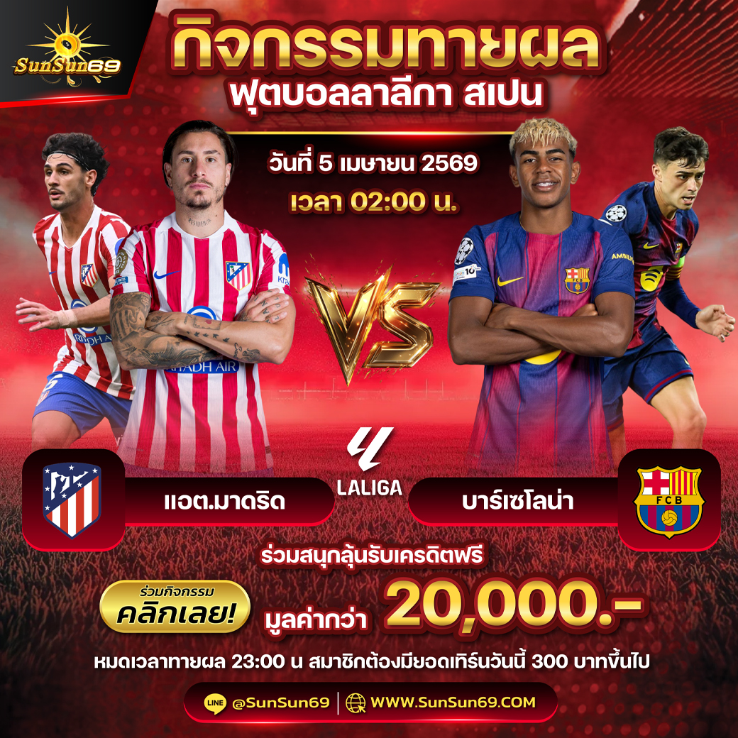 ทายผลทีมใดยิงประตูแรกและทายผลการแข่งขันถูก ลุ้นรับเงินสด 20,000 บาท(หารตามจำนวนคนถูก)